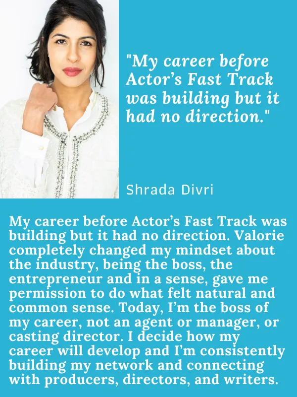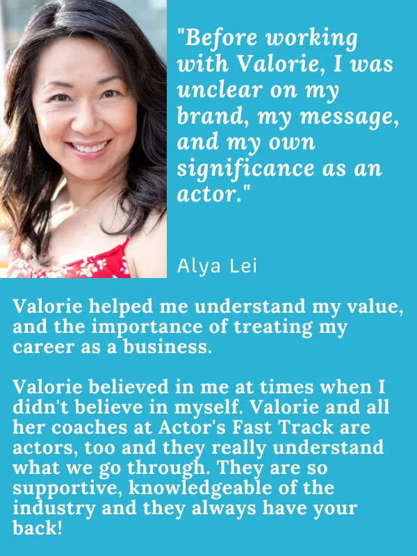 Founder of Actor’s Fast Track – For 25 years, Valorie has helped actors take control of their careers, land bigger roles, and make real money in this industry. Author of 3 Books – Including a textbook on the business of acting (because talent alone isn’t enough).